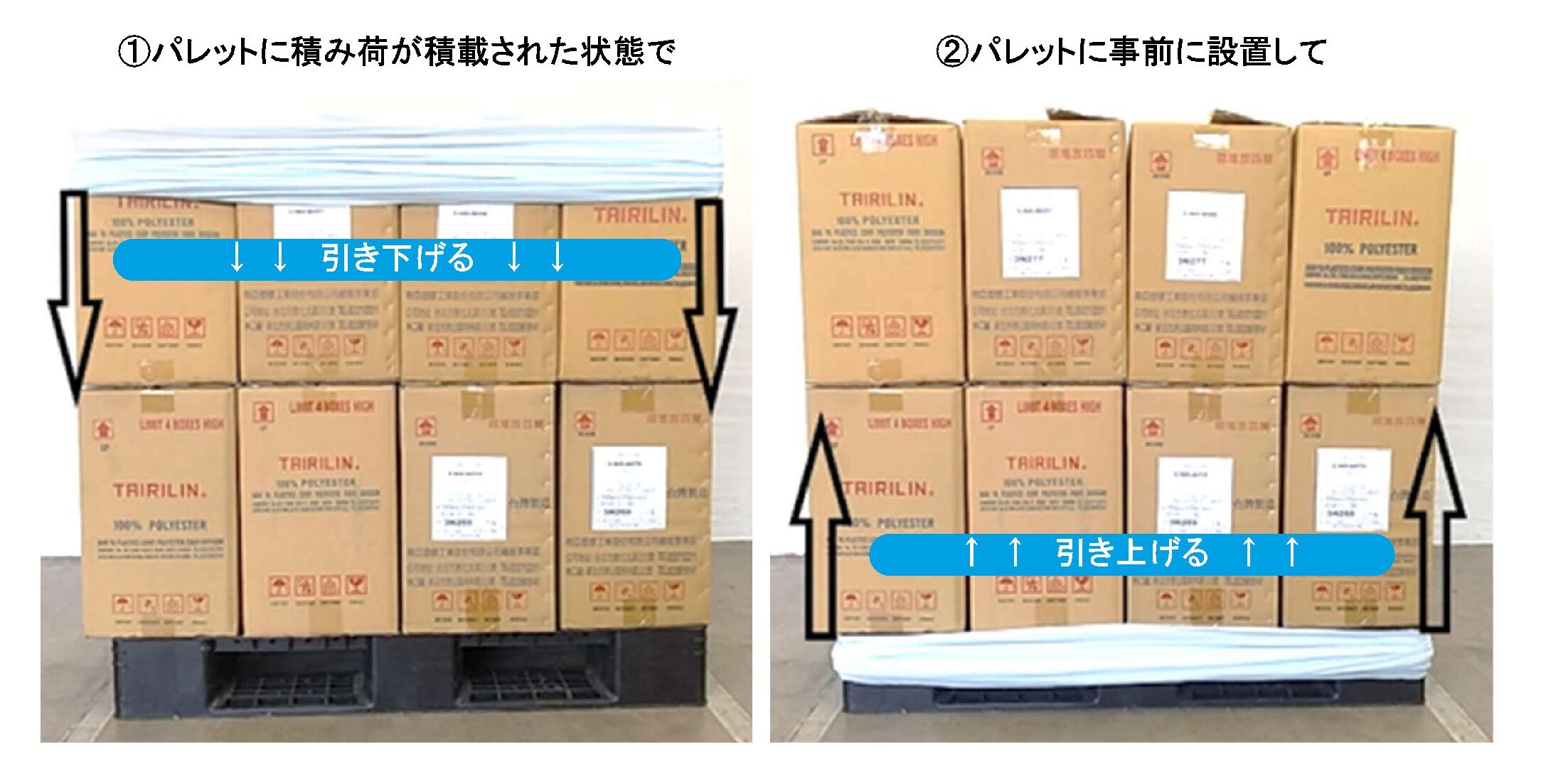 荷物の一部だけを梱包から外したいときも、少し捲ればすぐ取り出せる - 荷崩れ防止:伸縮性があり荷物にぴったりフィットし崩れにくい